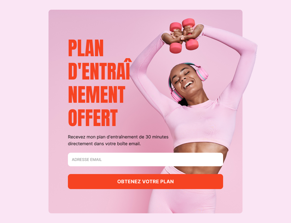 • Le visiteur reçoit une valeur concrète (10 % de remise, livraison gratuite, session bonus ou échantillon gratuit).