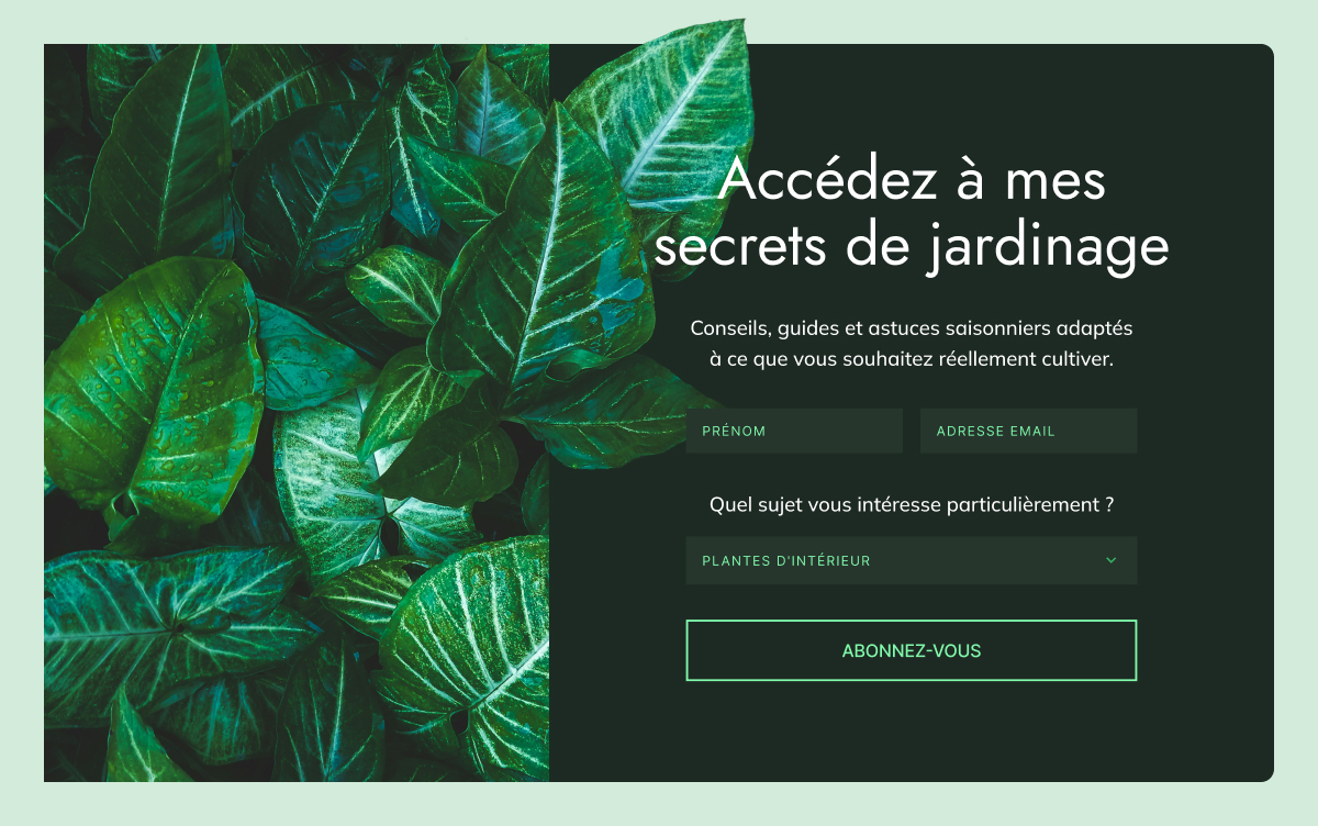 Remplacez « Abonnez-vous à notre newsletter » par quelque chose de clair et utile. Vous pouvez proposer une checklist courte, une fiche pratique, un modèle, un mini-guide, une remise, un échantillon gratuit ou un mini-cours par email. L’important est que votre offre résolve un problème réel que votre client idéal ressent actuellement et qu’elle mène naturellement vers ce que vous vendez.