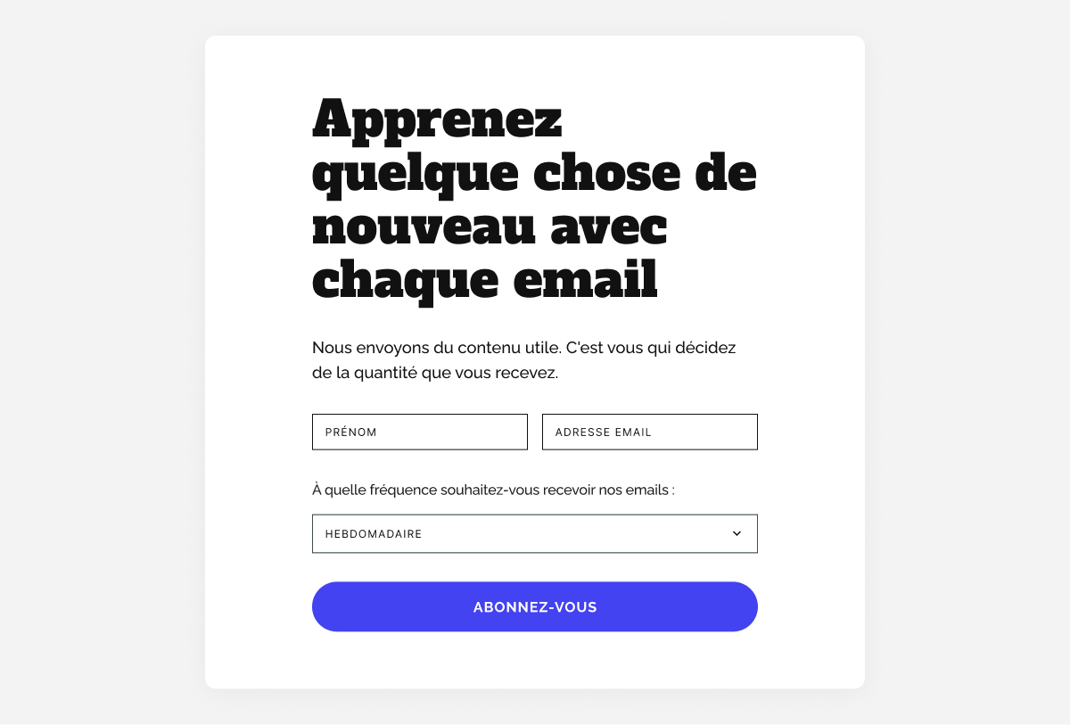 Les études sont claires : les formulaires plus simples convertissent mieux, en particulier sur mobile. Si vous n’utilisez pas un champ dans vos emails ou votre segmentation, ne le demandez pas.